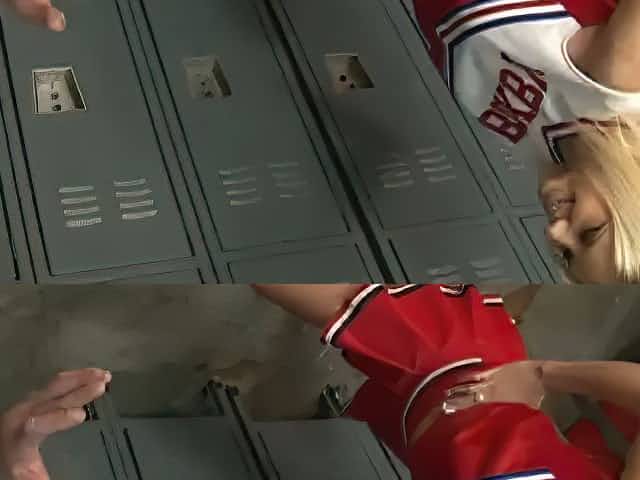 Cute cheerleader Tessa Taylor sucks and bites a cock in a locker room