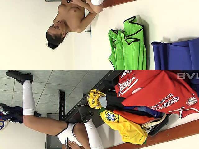 Soccer cuttie masturbating in the locker room after practice