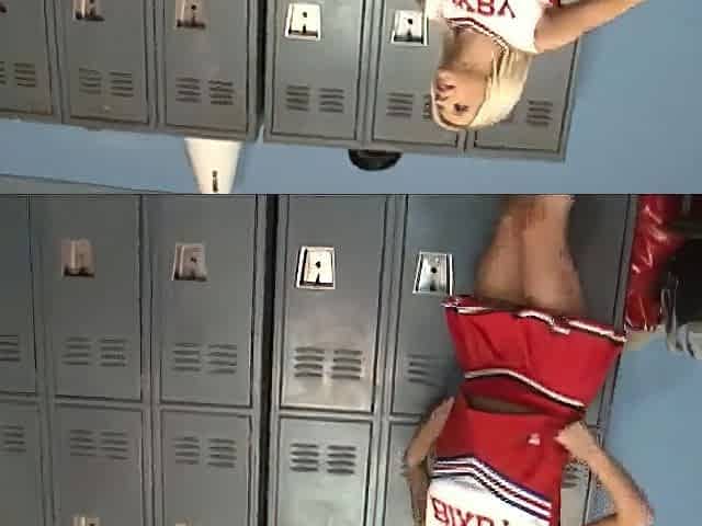 Blonde cheerleader Tessa Taylor gives a blowjob in the locker room