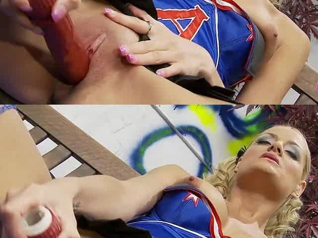 Posh Blonde Luana Masturbating With A Tiny Dildo In The Locker Room
