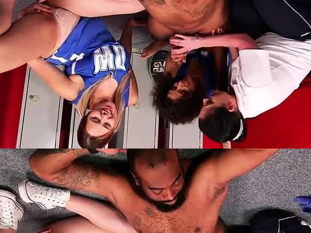 CFNM cheerleaders suck in locker room