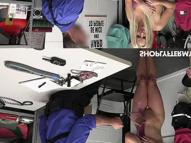 Panty sniffer caught in the girls' locker room by natural tits babe Christie Stevens