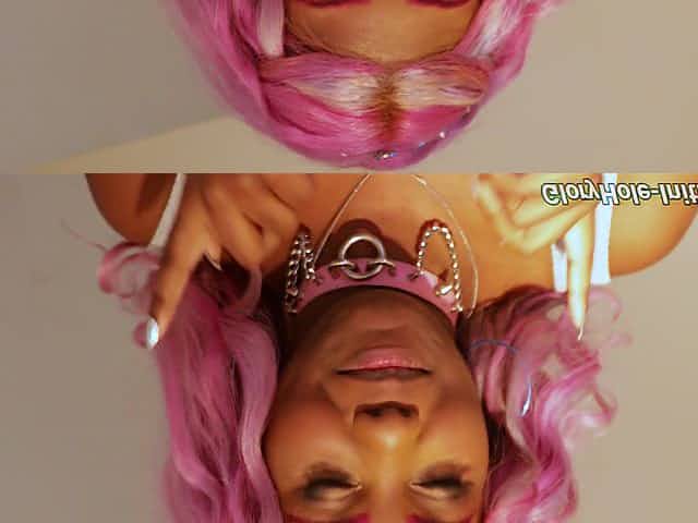 Black babe Alexis Tae enjoys a big white dick sticking out of the wall