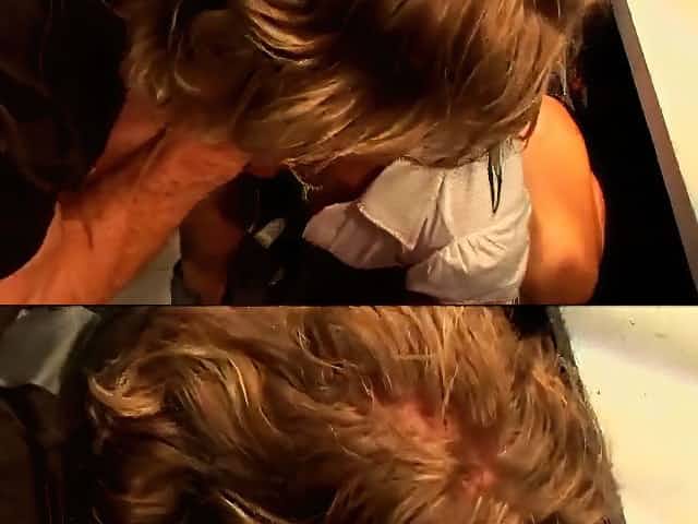 Ginger babi sucks and bites a guys hard cock in a locker room