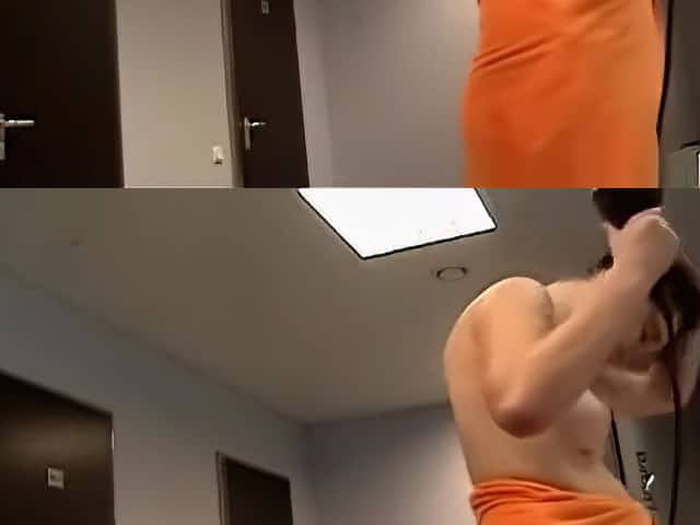 Double blowjob and titfucked in the womens locker room. hidden camera