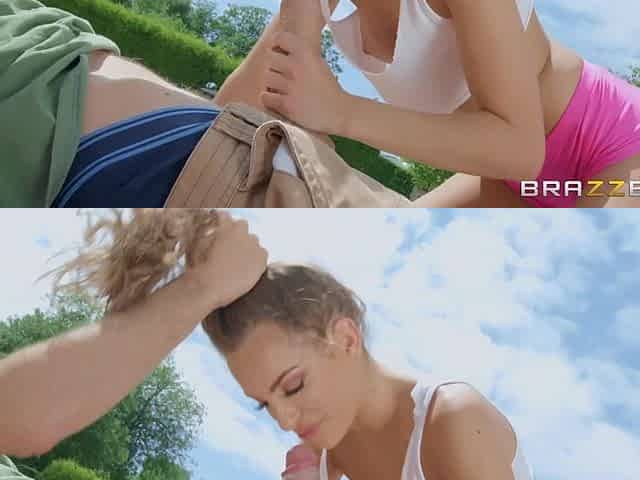 THE SHADY SPA - POV nympho honey likes sucking schlong whilst wanking it
