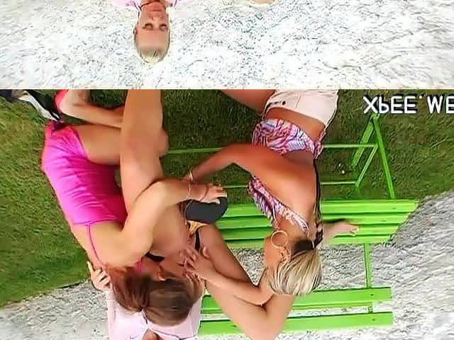 Sexy Jenna Lovely giving long dick superb blowjob in mad group sex outdoor