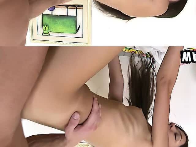 Skinny brunette teen can't get enough of a long cock drilling her anal hole deep