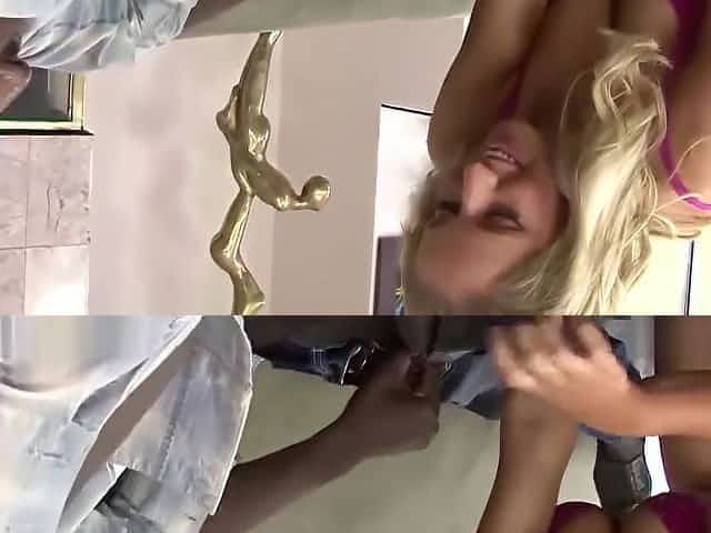 Busty blonde Brianna Banks has a guy feeding her hungry anal hole his long cock