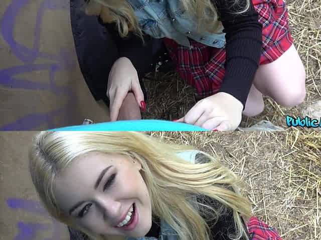 Cute blonde gets her mouth filled with a long cock before a doggy