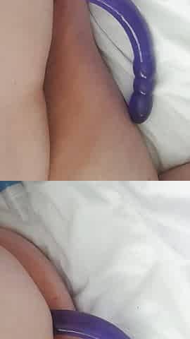 "BLONDE BENDS OVER AS LOVER FUCKS HER PUSSY WITH A LONG DILDO"