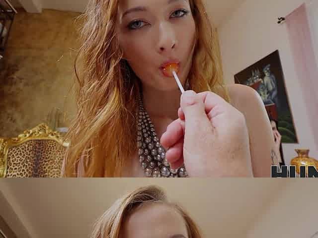 Beautiful long-haired pornstar Rylee Blake gives a blowjob.