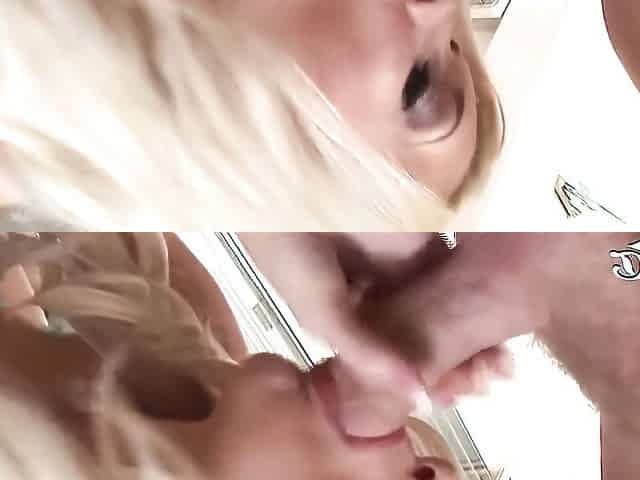 Beautiful long-haired Mackenzie Mace gives great blow job and handjob