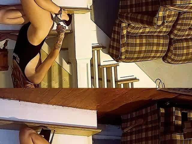 Got fresh PH gear and teasing my sugar dad on the stairs with my bald twat thats readu for shlong