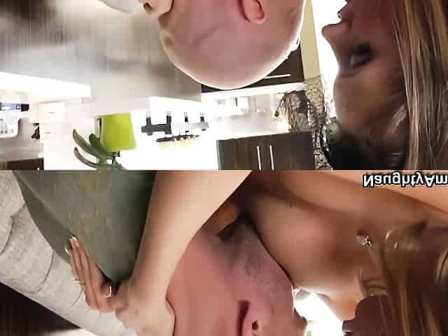 Blonde beauty Natalie Kensington rides her man’s cock in thong