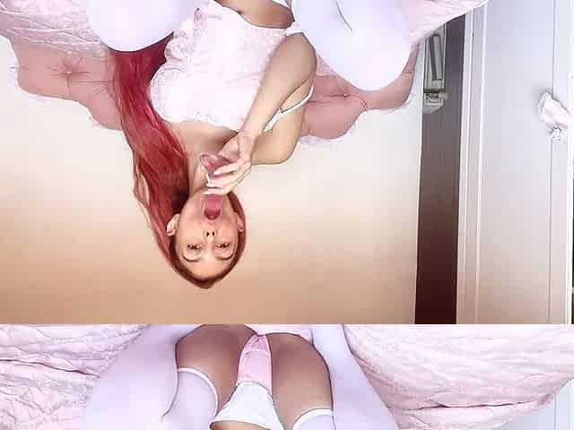 Redhead hottie Angel Rain masturbates outdoors with her slim body.