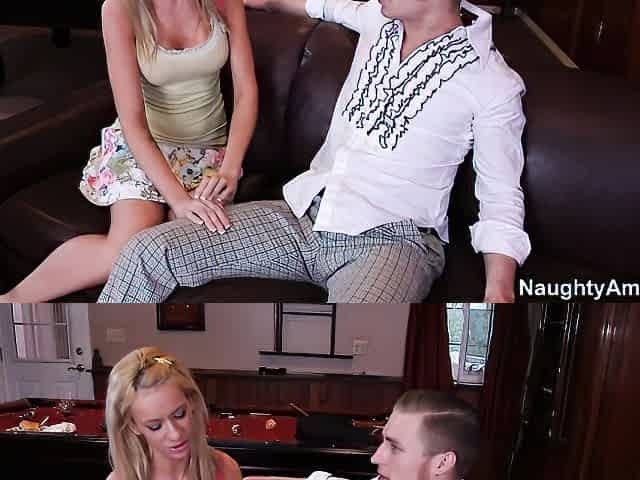 Hard fuck in the sideways pose with a busty brunette Amy Bellerose