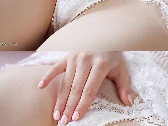 Solo brunette Emma Fantazy moans rubbing her wet pussy in 4K.