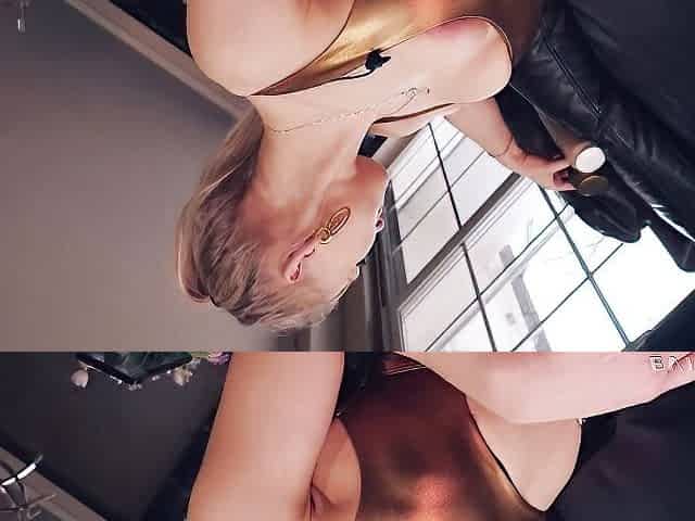 Aesthetic blonde with silicone tits Lolly Foxx likes face sitting