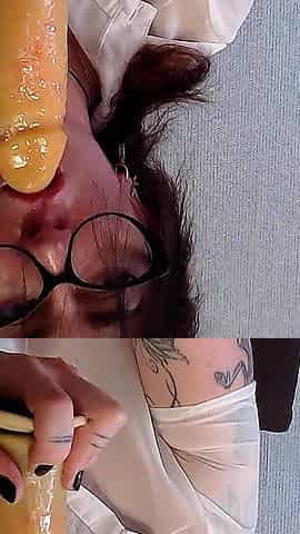 Febby Twigs squirts while getting fucked through a gloryhole in intense action.
