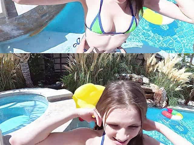 Brunettes Christian & Stacy take a wild plunge in the pool