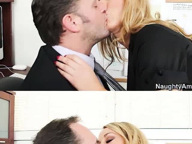 Beautiful long haired blonde Ashli Ames gives great blow job and fuck in missionary position.