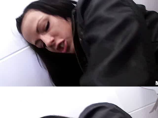 Sex in the toilet with a dick-swallowing brunette Samantha Joons