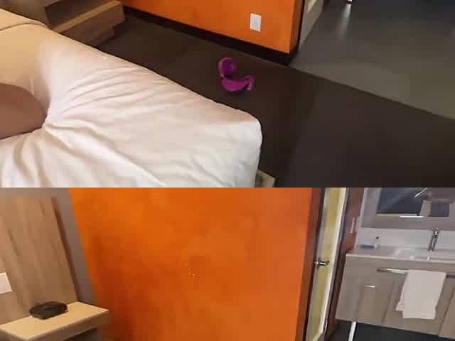Hot brunette gets gang banged by three men in a hotel room