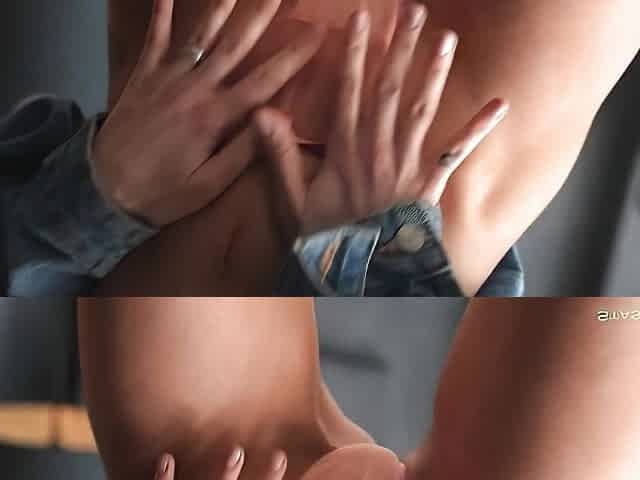 Astonishing hottie AnnaQ is touching her shaved pussy with love