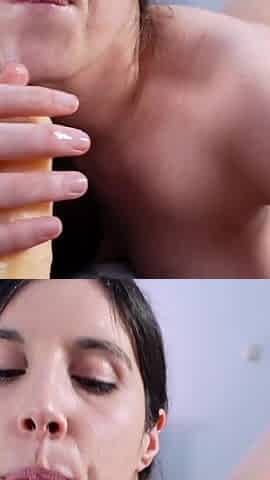 Brunette woman with long hair Sophie Torre gets fucked through a gloryhole