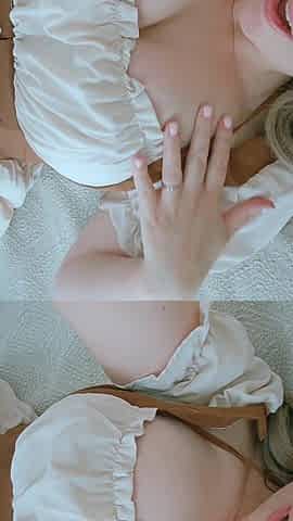 Big-breasted girlfriend Miss Raquel is touching her shaved pussy