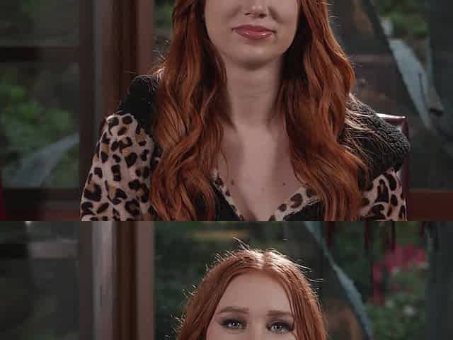 The red-haired star Madison Morgan adjusts her clothes in a private setting.