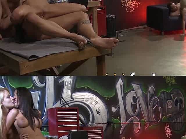 Keisha Grey in fishnet, giving massage to her handsome boyfriend