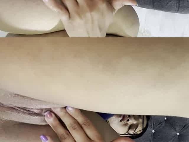 A beauty with silver hair gets a lot of cum in her vagina. Creampie POV