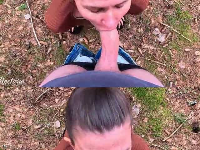 Real Russian couple filmed their uexpected blowjob in the wood