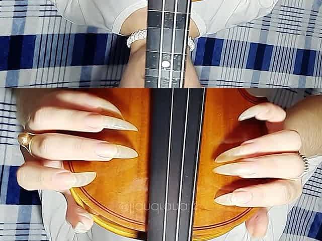 Long Natural Nails and Violin