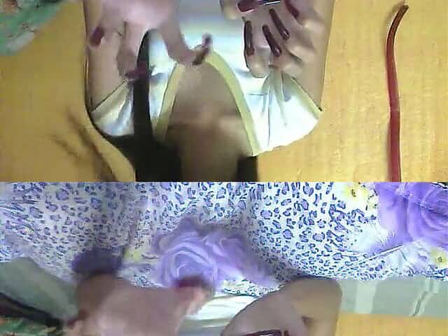 Playgirl with pink nails edging large shlong untill this chab cums