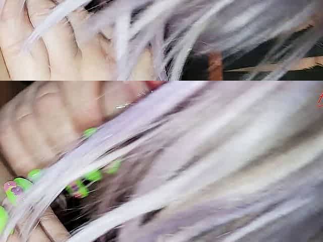 Brushing my hair with little and big brush and by long nails