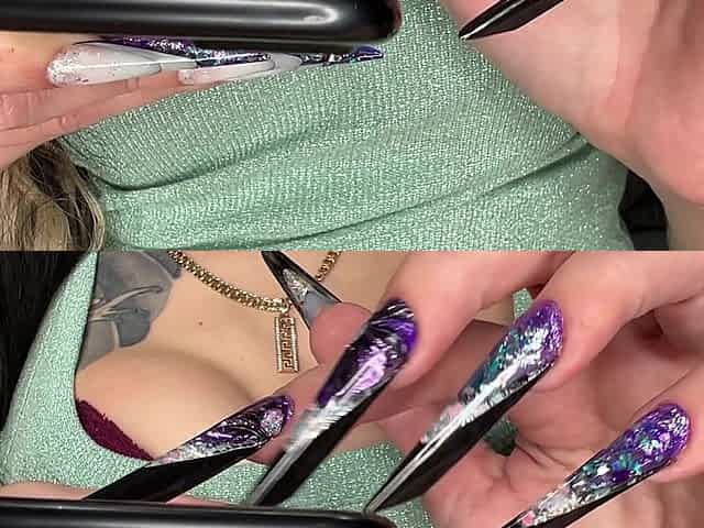 Dark Purple Long Nails, Claws, Palms, Finger Sucking, Face Fetish, Handjobs with Spit