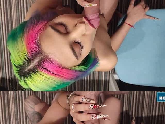 New Color Long Nails, Sharp Stilettos, Long Fingers, Hot Handjobs with Spit and Pvc Tight Dress on