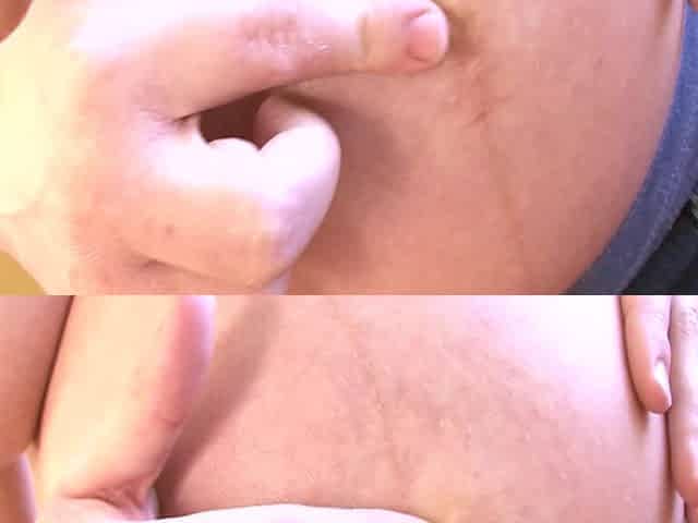Rubbing lotion on my enormous stuffed belly after being rammed hard