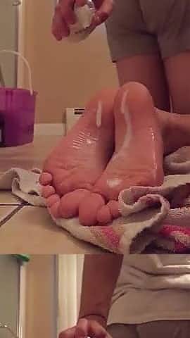 Rubbing lotion on my feet