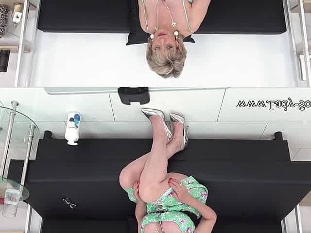 Webcam Russian redhead lady, rubs lotion on her soles