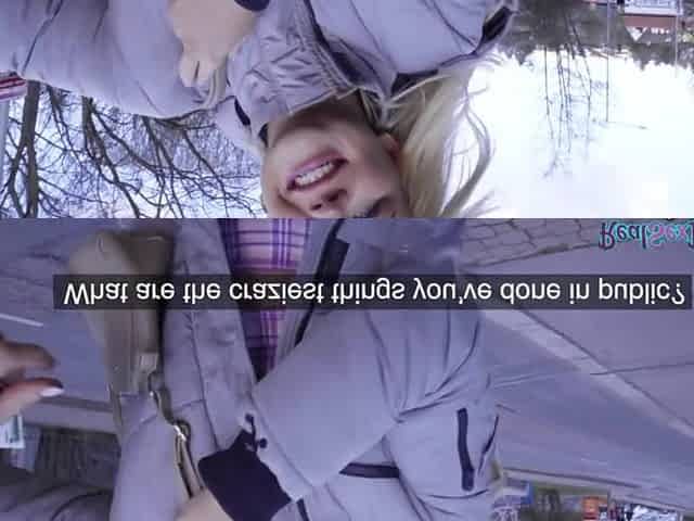 Public pickedup amateur gets her pussy spread by lucky stranger