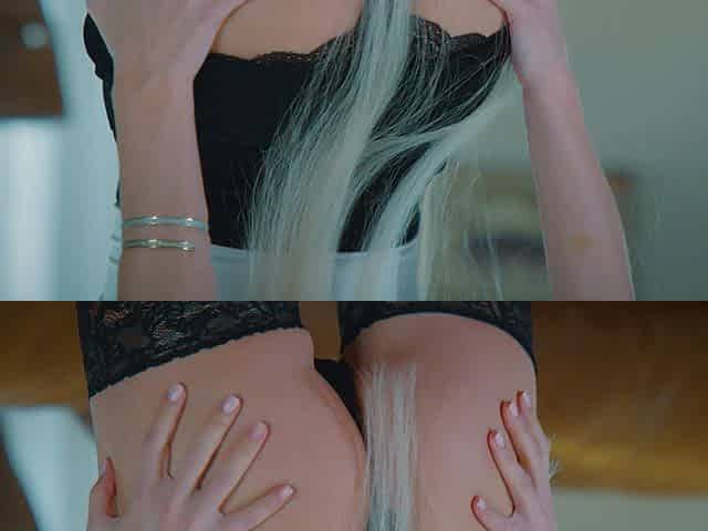 Seductive model Lucky Bee drops her black lingerie to ride a hard dick