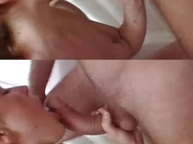 She loves to feel warm cum in her mouth after sucking off two lucky dudes