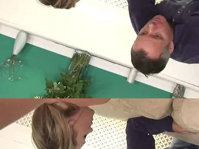 Hot blonde gets her face fucked by lucky guy