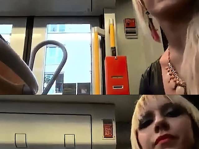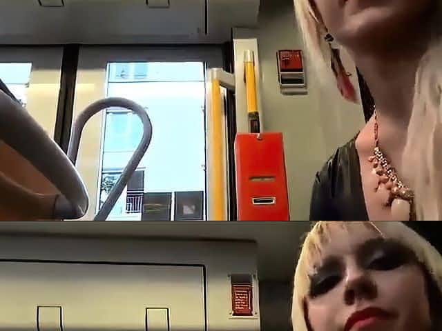 Girl jerks a lucky guy cock on the bus
