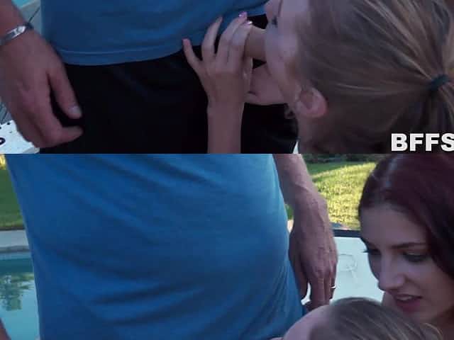 Busty Mom And Skinny Teen Play With My Lucky Huge Cock