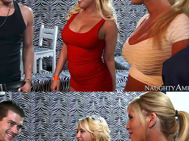 Cock hardening busty brunette and blonde chicks enjoy teasing lucky man